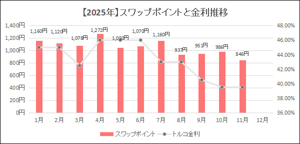 【毎月更新】トルコリラの過去スワップポイント一覧
