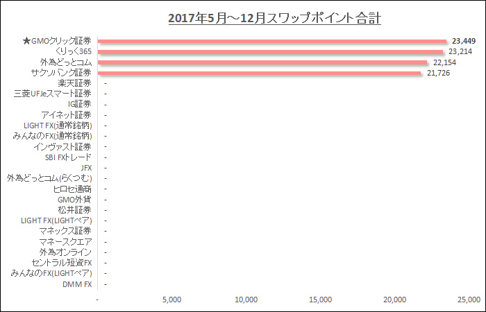 それから、GMOクリック証券がスワップポイントを高くすると、他社も高くしてきて、国内のFX会社間で競争が激化する傾向も分かりました。んで、GMOクリック証券に勝てないと分かったら、他社はスワップ増額キャンペーンで対抗してくるってのも面白いですね。