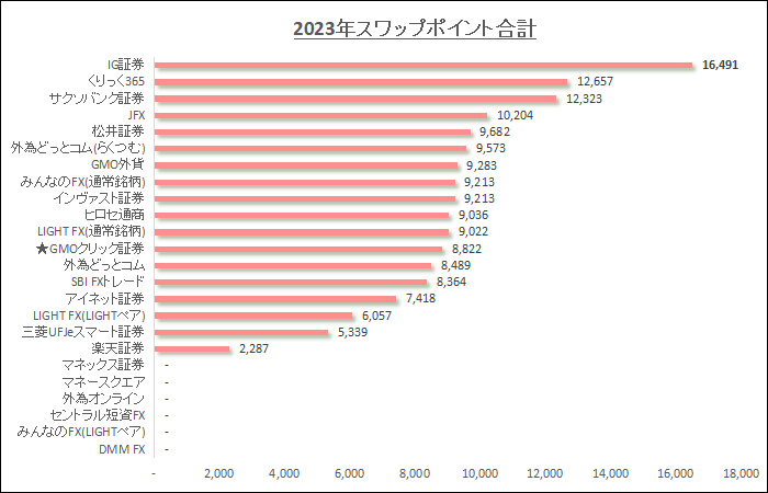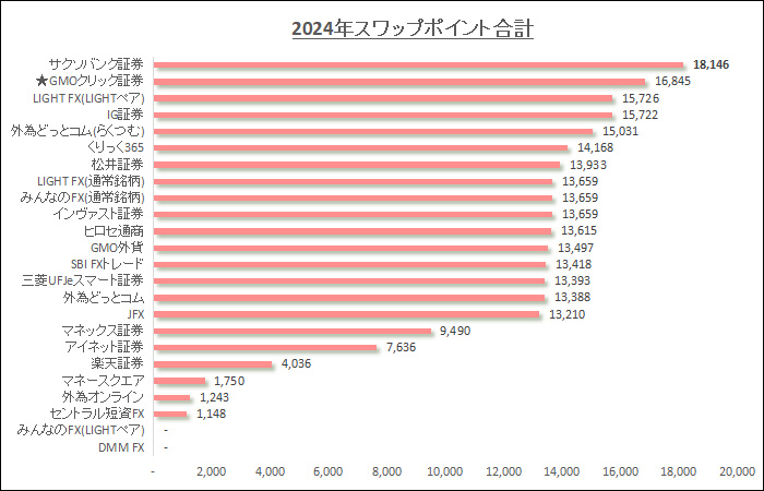 2024年以降は、GMOクリック証券のスワップポイントがグッと増えて、業界最高水準の状況が続いてます。