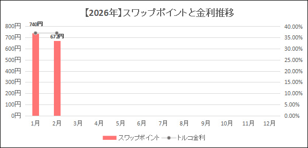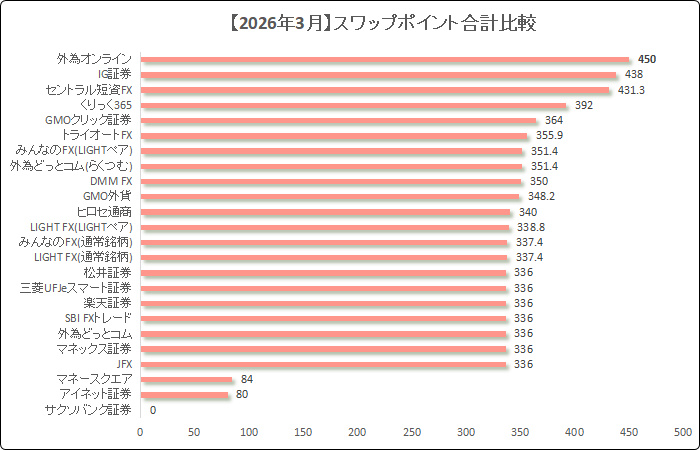 他社よりも少ないスワップポイントで固定&途中で他社のスワップポイントが増えると2026年1月/2月みたく、順位が大幅にダウンする"もろ刃の剣"的なFX会社です。