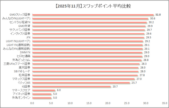 【全23社】どこが一番高い?【11月】スワップポイント合計&平均比較