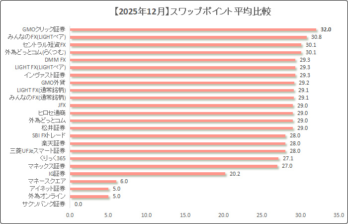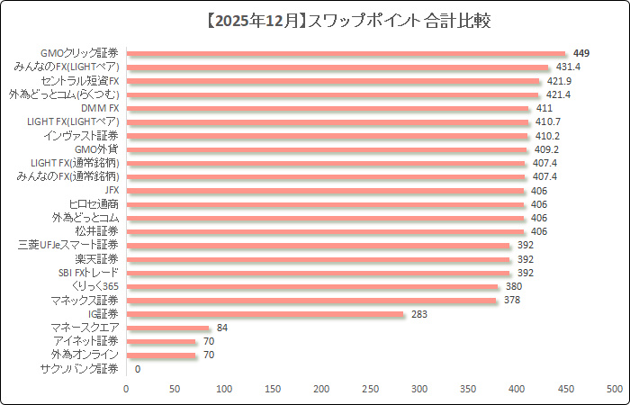 【全23社】どこが一番高い?【12月】スワップポイント合計&平均比較