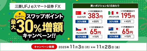 【1日8.8円増量】三菱UFJ eスマート証券 FX【11/28まで】