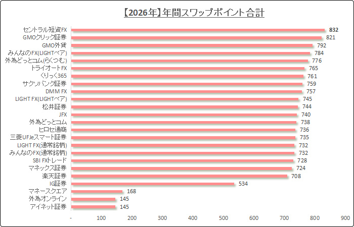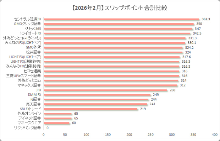 今は1日26円で、2025年に年間トップだったGMOクリック証券と並んでて、現在1位のセントラル短資FXと0.1円の差まで縮めてますぜ!(2月14日時点)